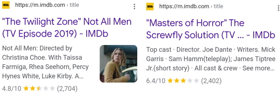 6.4/10 for MASTERS OF HORROR “The Screwfly Solution”