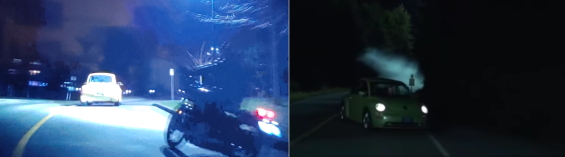 Both have their respective blonde female protagonists driving around by day, and being chased by night, in identical yellow Volkswagen Beetles