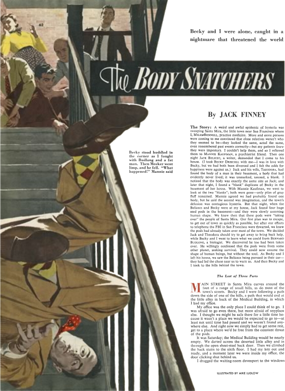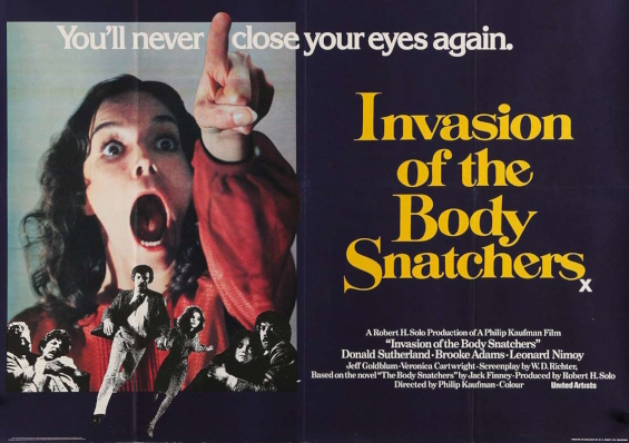 The Body Snatchers, Invasion Of The Body Snatchers, 1976/8, 1956, very faithful, the changes to the text, a slightly bigger frame, in and about and to the ending, I drive a 1973 Cadillac, 5 adaptations, the 1978 adaptation, 1955, serial finished on Christmas Eve, beautiful illustrations, 2007, The Day Of The Triffids by John Wyndham, 1951, The Puppet Masters by Robert A. Heinlein, The Father Thing by Philip K. Dick, The Hanging Stranger by Philip K. Dick, an alien invasion of space plants, the scale, the major point of the body snatchers is the snatching, 28 Days Later, The Walking Dead, The Night Of The Living Dead, Earth Abides by George R. Stewart, the plants are consuming people, a spore in the air, so close in other details, its eerie, an outsider to mainstream science fiction, Ray Bradbury, when Heinlein gets in a slick, bridging the gap between the mainstream mom and dads of the 1950s, the original dad ends up in a trash can, pod people in the sense their emotions are done, must be some sort of display, very Stephen King-like, a contagion that’s spread, communist Red Scare, you need to conform or those people are communists, 4 official adaptations, delightfully 1970s, Donald Sutherland, Jeff Goldblum, Leonard Nimoy, a really cool connection, maybe there are only 3 adaptations, it might be the case that they’re all the same storyline, Kevin McCarthy, a cameo, reprising his scene, they’re coming! they’re not who you think they are! they’re here!, Mill Valley, California, San Francisco, Louise Fletcher Veronica Cartwright is the last human alive in the 1978 movies, Wendy Lenk, the 1993 adaptation, Body Snatchers (1993), Scott has an idea for a movie called Snatchers, the Recorded Books audiobook, the Blackstone Audio, Kristoffer Tabori, a pretty terrific novel, reverse engineering, very close, a low budget, the bubbles and the foam, the major difference is the ending, the novel has the worst ending, we did it – we fixed it – it’s over, the ending of The War Of The Worlds, by accident we survived, The War Of The Worlds: The Series (1988-90), the Spanish Flu, WWI, individual tragedies vs. collective tragedy, the humour, the first person perspective, he sure seems handsome, divorcees, a wonderful relationship, they dated in high-school, compassionate writing, the meta-ness of the novel, brilliant!, Heinlein’s not good at people, Somewhere In Time, a different skill at writing, the clarity of Westlake, in relief against the other adaptations and the changing times, what’s missing from every adaptation, Billy the shoe-shine man, it’s not about communism, its about us, in a terrible relationship, Billy the shoe shine man is our hero, everybody is a white-man, none of the other adaptations go near that, self-loathing, other black characters in the adaptations, its not about race relations at that point, Finney is saying it, the cave, the ending, divorcees as human beings, the relationship he has to his patients and his own body, his girlfriend’s skeleton, her flesh fits her bones, two skeletons in his closet, the world is going to be saved, Soylent Green, you gotta tell em!, so Body Snatchers-ish, the pods are not giving up, they’re kinda resisty, anti-science fictional, he couldn’t know what he needed to be done, forget everything I said, maybe an editor made him do it, he didn’t fix it in the revision, its about San Fransisco and the people who live there, the banjo man, they have to share a pumpkin, the same relationship, the potential future girlfriend is already in a relationship, go to the psychiatrist with me, maybe he’s turning gay, the 2007, the kid is the primary relationship, The Invasion (2007) is very slickly done, a cool science fiction movie, a spore, an infection like a zombie infection, colonized chrysalis-ed, a collective consciousness, a way cool element, doubling down on why being snatched is maybe not such a bad thing, you will be just like you, there’s nothing new for you, the whole world is involved, a unilateral disarmament treaty, worse and worse or better and better, the countries listed, North Korea, Iran, Venezuela, Iraq, we’re all the same people inside, much more seductive, both positive and negative, played as totally positive, Daniel Craig is still alive, now recovered, all dream like, memory loss, Nicole Kidman has too children, in the background the American Empire is resuming, back to where we are, they close on her face, that amazing dance, the personal vs. the collective, the waiters are spitting into the coffee, fungal load, Equilibrium (2002), the dancing with guns movie, drugging their population, a society worth having an protecting, Aldous Huxley’s Brave New World, its all connected, the flying pancakes episode of Star Trek, Landru, you are not of the body, pointing and screaming, “New York Times has good reporters”, the most toxic relationship on the history of the Earth, so exactly right, a received opinion, why this book was so powerful, the NPC meme, youre a character in the story but you have no will or volition of your own, a red shirt, there to serve the plot and to show the gravity of the situation, if you are acting like an NPC you are making a mistake, philosophical zombies, observing somebody through a telescope, like a robot, following a script, a bot in computer games, critiquing the idea of individual thought, the processes have happened within us, watching a great actor in the great movie can give you a simulation of that, highly sympathetic actions, the psychology building up around that pool table, his new GF is in danger from her dad, a very cool Americanism, he runs in wearing his pajamas, magnified in the 1978: the amount of gaslighting that happens, Leonard Nimoy is a pod person from the beginning, the way he treats Jeff Goldblum, Robert H. Solo, Neil Simonesque, Alan Alda and Michael Caine and Richard Pryor, a style of film, it became a staple, the 1993 is the shittiest version, Invasio